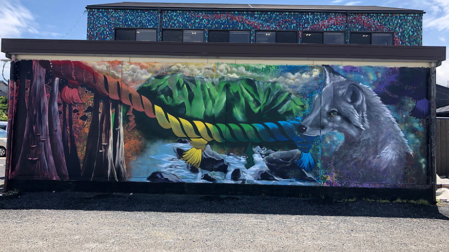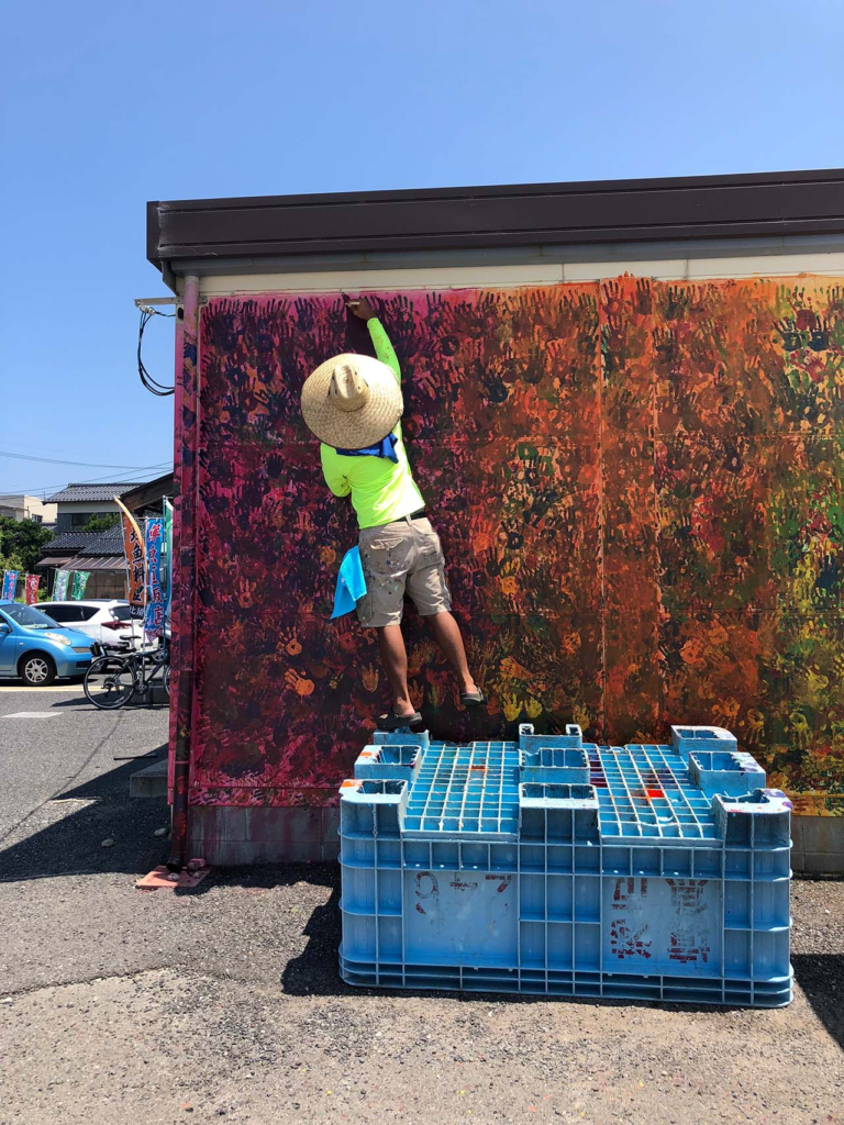 The water that was gathered from the sacred Mt. Daisen is carried into the work, layered into the mural, and returned as presence.